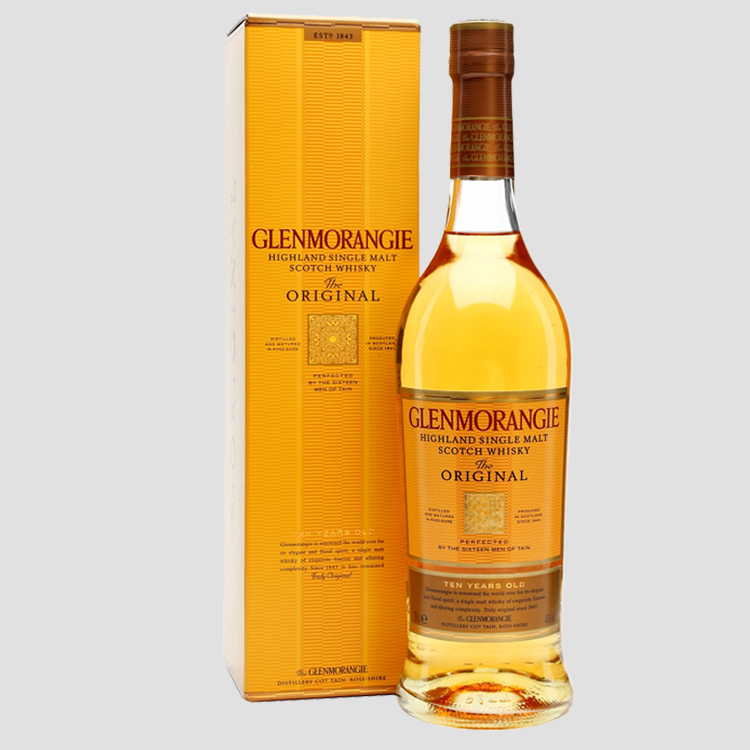 Glenmorangie Original, zehn Jahre gereift. Duft von Zitrus und reifenden Pfirsichen, gemildert durch Vanille. Am Gaumen Vanille, gefolgt von einer Explosion blumiger Fruchtigkeit.